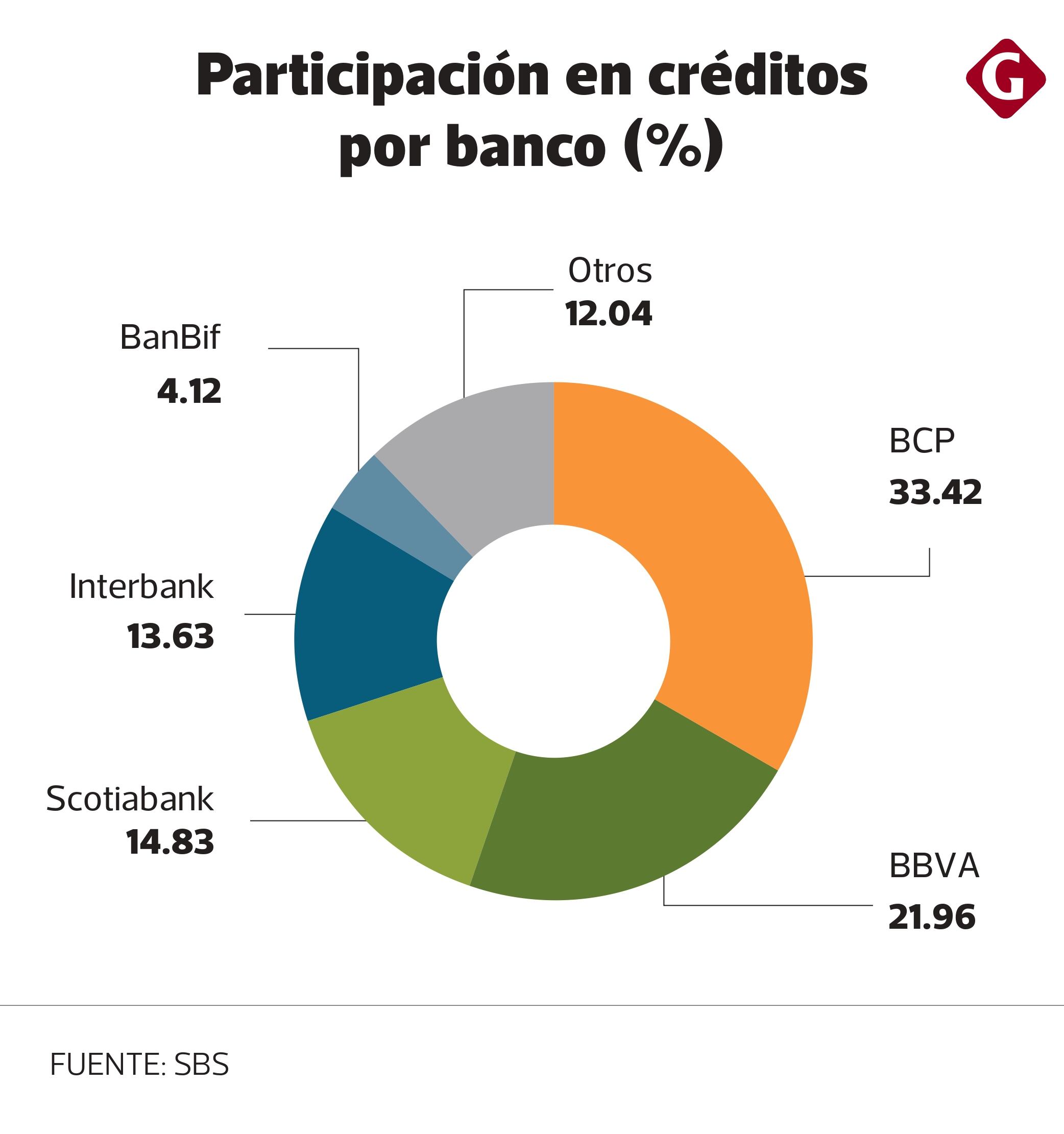 A julio último, el 83.8% de los créditos es administrado por los cuatro bancos más grandes del sistema, BCP, BBVA, Scotiabank e Interbank, de acuerdo con datos de la Superintendencia de Banca, Seguros y AFP (SBS).
