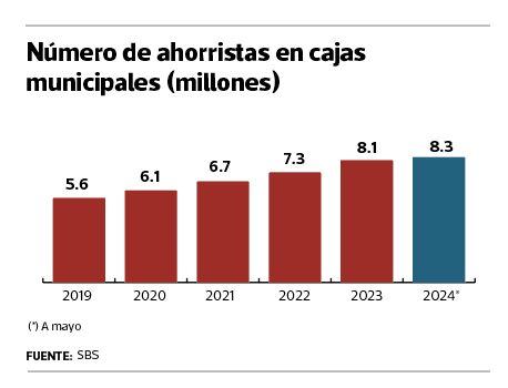 A mayo, el sistema de cajas municipales atiende a 8.3 millones de ahorristas, de los que 5.9 millones pertenecen a las cuatro entidades con tarjeta de crédito.