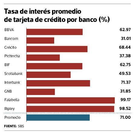De este modo, el costo de financiarse con el plástico de Caja Cusco va desde 26% anual, en Caja Piura es de 33.6% y en Caja Huancayo, 27.3%. Mientras que la tasa promedio de una tarjeta de consumo bancaria asciende a 71% a la fecha, de acuerdo con la Superintendencia de Banca, Seguros y AFP (SBS).